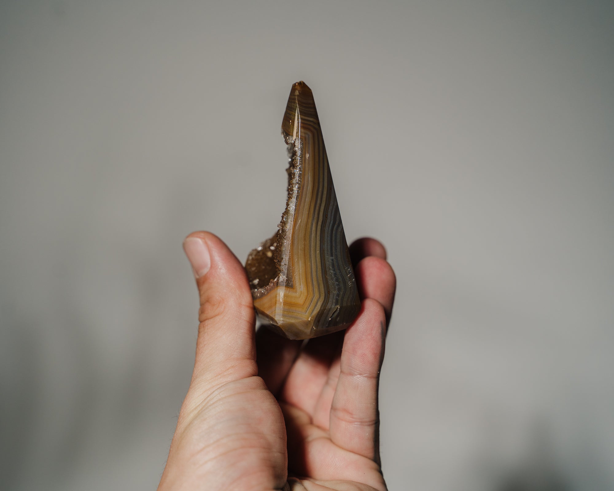 Als Achat zähle ich zu einer der wichtigsten Edelsteine überhaupt. Bei depressiver Stimmung, kann ich für mehr Positvität und Lebensenergie sorgen. Ich bin auch ein starker Schutzstein vor physischen und emotionalen Attacken. Ich helfe dir deine Sorgen abzulegen und sorge auch für Ruhe in stressigen Zeiten. Durch mich lernst du ein bisschen langsamer zu werden, mehr auf deine Mitte zu hören und dadurch wieder zu dir selbst zu finden.